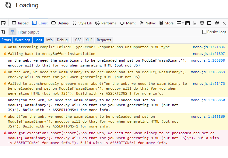 Everything for the WebAssembly is just static pages, I should be able to push this up to my website hosted via Azure and it will be available for the world! I did just that, went there with my browser but it didn't work.