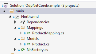 In this example we have the models and mappings in the same project. It makes more sense for actual real life code to separate them. Have a Northwind.Models and a Northwind.DataAccess. That way you don't need to change your models if you decide to use something else for data access. Another benefit is if someone doesn't care about data access and only wants to use your models, less dependencies. Think... Separation of Concerns.