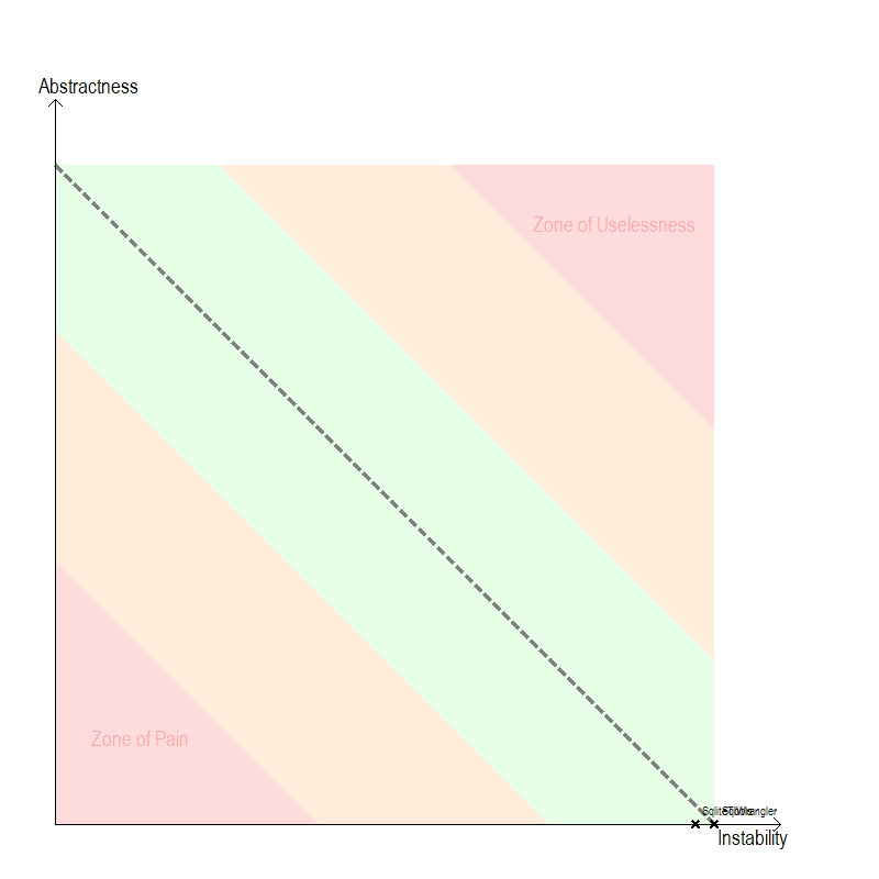 The Abstractness versus Instability Diagram helps to detect which assemblies are potentially painful to maintain (i.e concrete and stable) and which assemblies are potentially useless (i.e abstract and instable).